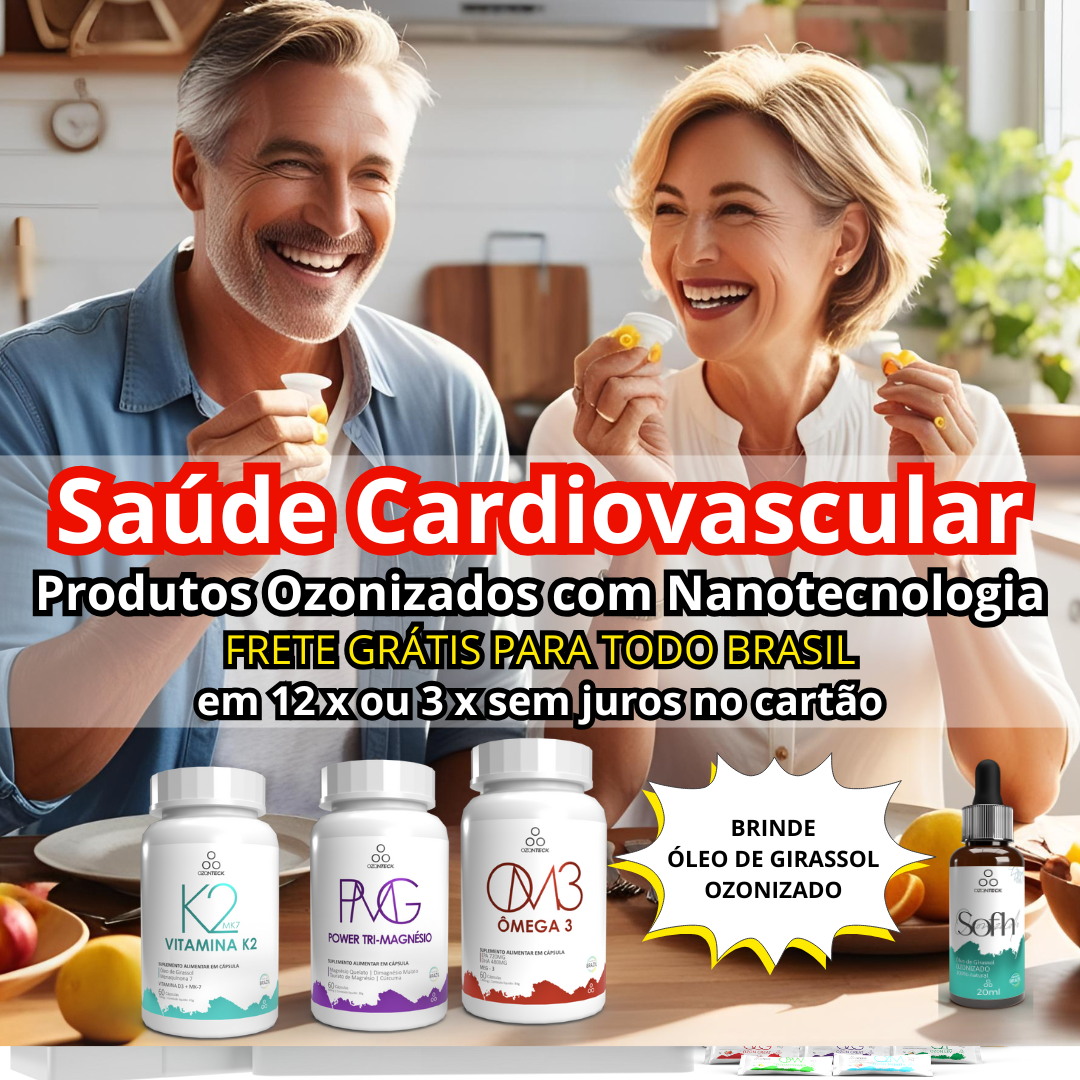 Este kit exclusivo da Ozonteck combina três suplementos de alta performance para a saúde cardiovascular: Vitamina K2 MK7, Power Tri-Magnésio e Ômega 3 de Alta Absorção, todos formulados com tecnologia de ozonização e nanotecnologia para máxima eficácia.